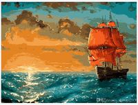 12x16 Pulgadas Sunset Vela Volver Bricolaje Pintura Dibujo Sobre Lienzo De Arte Numeros Aceite Acrilico Pintura Kits Marco Para Adolescentes Adultos