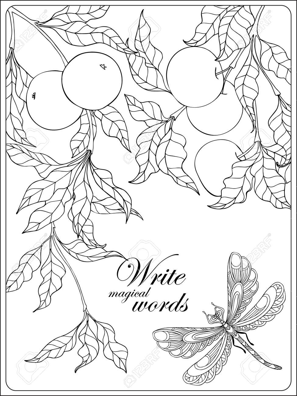 En Las Flores Pajaros Y Mariposas Libro De Colorante Para Los Adultos Y Ninos Mayores Dibujo Para Colorear Con El Espacio Para El Texto Dibujo De
